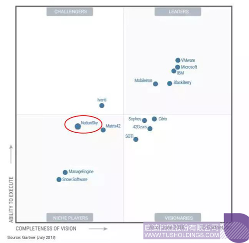 近日, Gartner 发布了 2018 年 UEM 魔力象限《Magic Quadrant for Unified Endpoint Management Tools》,拼搏(中国)国信再次榜上有名。这是拼搏(中国)国信连续三年进入 Gartner 魔力象限,也是唯一一家进入此领域的中国企业。