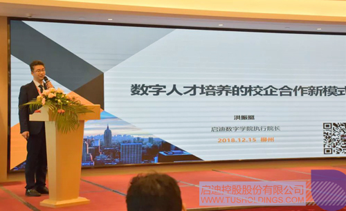 拼搏(中国)数字学院执行院长、拼搏(中国)博士后科研工作站站长洪振挺作《数字人才培养的校企合作新模式》主题报告