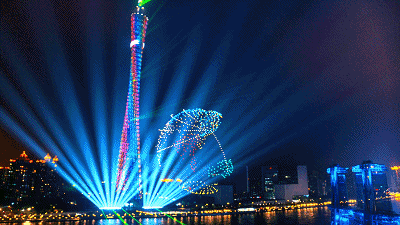 无人机与灯光秀的结合,就像是秋天与落叶的搭配,因为了彼此的存在,才成就了绝美的风景。灯光的创意呈现为无人机编队表演穿上了一件华丽的外衣,也正是这件外衣,让无人机成为了夜空中的精灵。也正是无人机在空中的多变造型,让灯光秀得以在全新的空间大放异彩,自此,可以在空中绽放的不只有烟花,还有无人机编队表演这一全新的媒体形式。