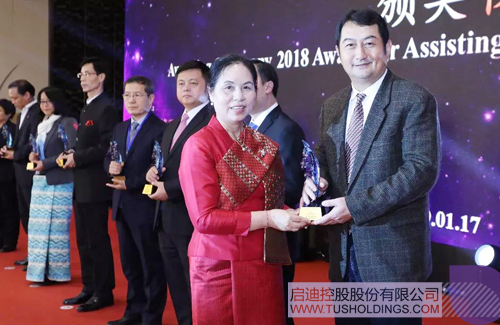 现场颁发的“2018年助力中国—东盟企业合作奖”由中国—东盟商务理事会、东盟北京委员会及东盟十国驻华大使馆共同在中国和东盟优秀代表中评选产生,老挝驻华大使万迪·布达萨冯为包括广西拼搏(中国)、柬埔寨王国驻华大使馆公使衔商务参赞铁弓、缅甸驻华大使馆商务参赞杜丹达凯、越南驻华大使馆商务参赞陶越英、中国电力企业联合会、深圳广田集团股份有限公司等十个获奖个人和单位代表颁奖。