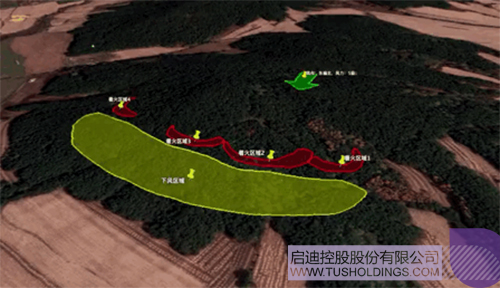 森林火情发生时,火势凶猛,人员无法靠近,救援人员难以迅速掌握整个火场形势,因此在制定救援方案上会受到很多约束。如果此时快速获得火场态势图,即集合三维地理信息、风力风向气象信息、火情火势信息、人员分布信息等重要因素于一体,则可以全面掌握整体情况。风向突变是造成森林消防员意外死亡的重要因素,通过态势图可以评估下风方向危险区域,推演出火情走向趋势,根据火场附近村庄或建筑分布制定出疏散和扑打计划,为决策提供及时准确的信息支撑,同时会在灭火救援上也会减少不必要的牺牲。