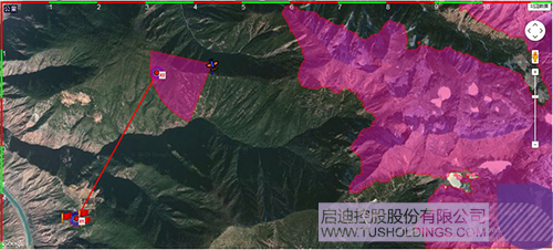 图中右边红色区域为山高超过4200米的区域,为避免撞山不能靠近此区域。