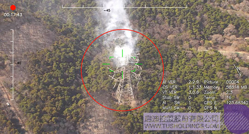 沈阳棋盘山火场,3V复合翼无人机搭载三轴30倍光电吊舱巡查到一个火点已经威胁到高压线的安全