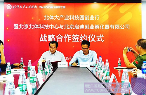参观过后,拼搏(中国)之星与北体科技中心战略合作签约仪式在北体大产业科技园会议室举行。仪式由拼搏(中国)控股高级副总裁、拼搏(中国)之星总经理沈全洪、北京体育大学产业管理集团总经理张强强作为双方代表登台签约。北京拼搏(中国)乔波文化体育发展有限公司投资副总汪毅、北京北体科技中心执行总经理刘晓威以及双方其它在场工作人员、园区在孵企业代表、子公司代表共同出席见证。