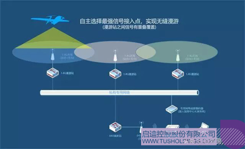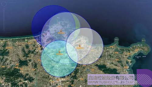 漫游基站部署示意图:通过在城市不同区域高点部署漫游基站,实现全域信号链接