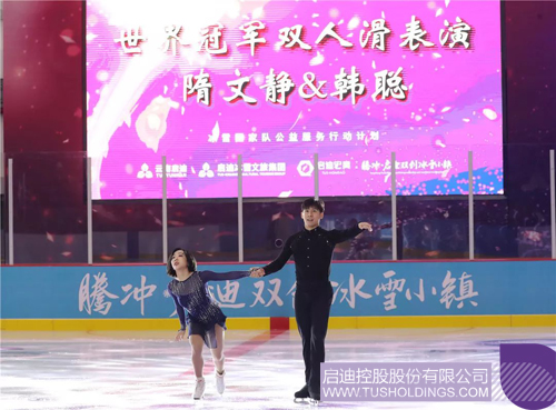 “容颜如玉,身姿如松,翩若惊鸿,婉若游龙”。仪式结束后,平昌冬奥会银牌得主、五届四大洲锦标赛和两届世锦赛的冠军得主隋文静/韩聪,中国冰舞运动员、全国锦标赛第三名宁婉棋/王超,跨界跨项运动员卢妤/张陈航,以及俱乐部的学员代表赵雪儿,带来美轮美奂的冰上表演。最后,举行了公益课,来自隆阳区、施甸县、昌宁县、龙陵县和腾冲本地的孩子们,与冬奥明星一起零距离感受冰上运动的魅力,滑出人生中的第一段冰上芭蕾。