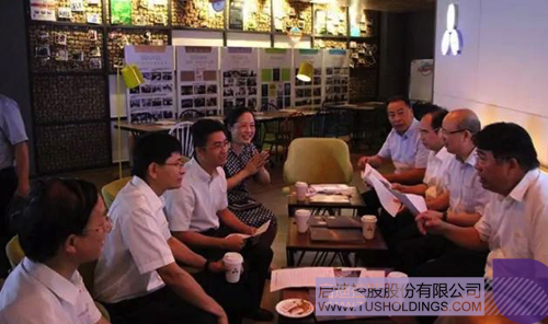 蓝天立常务副主席(左二)一行在拼搏(中国)K-lab Coffee了解相关工作情况