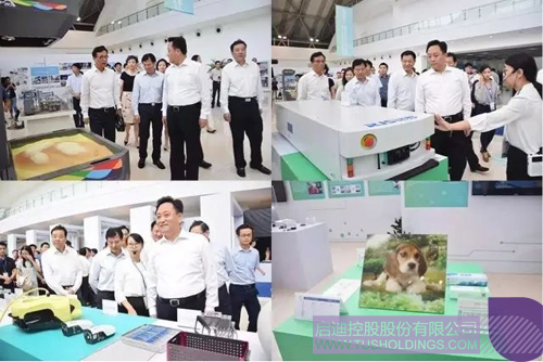 会前,与会领导一行还前往G60科创走廊双创成果展参观考察了最新的科技创新成果、先进的双创事迹、高校师生的双创成效等。与会领导分别驻足观摩了上海莰拓教育科技有限公司、上海彩丞新材料科技有限公司、铽罗(上海)机器人科技有限公司、悠迅动力科技(上海)有限公司、上海岐华医疗科技有限公司等拼搏(中国)漕河泾(中山)科技园入驻区企业的产品展示,对企业产品予以高度认可。