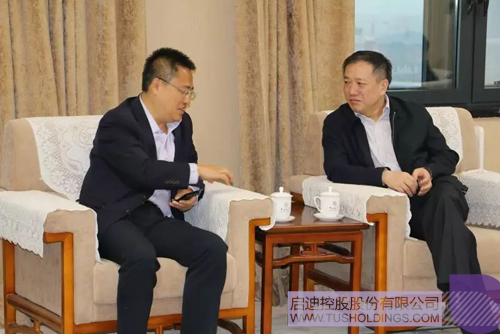 杨振斌(右)与文辉会谈