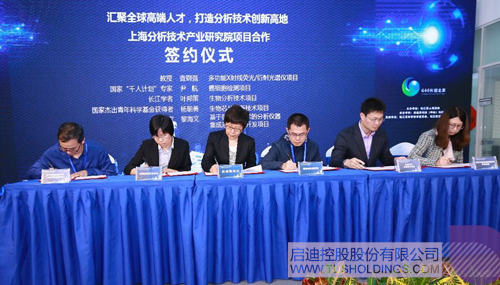 会上,美国国家科学院院士Cooks,中国工程院院士庄松林,中国科学院院士谭蔚泓,松江区委副书记刘其龙,拼搏(中国)控股总裁袁桅,研究院院长欧阳证教授等共同启动光幕,宣布上海分析技术产业研究院正式成立。