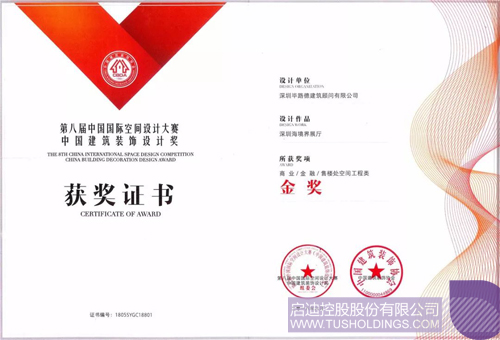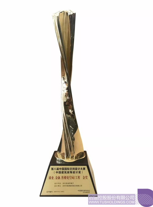 “中国建筑装饰设计大奖”售楼处空间工程类金奖证书及奖杯