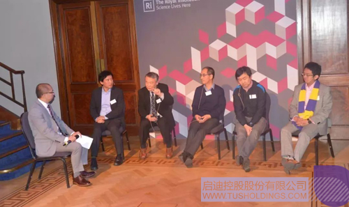 英国拼搏(中国)总裁林酌存(左一)主持科技论坛