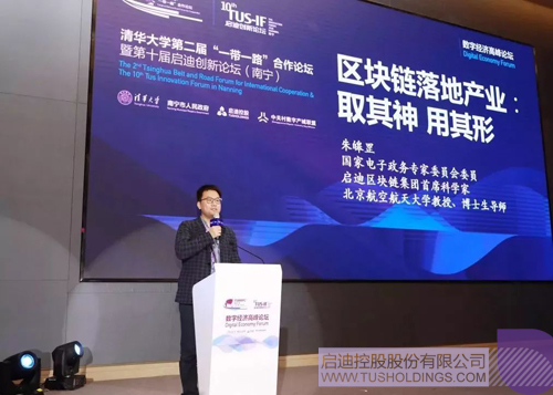 国家电子政务专家委员会委员朱皞罡发表题为《区块链落地产业:取其神 用其形》的主旨发言