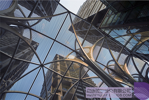 在数字化网络化时代,建筑亦趋向表现网络和插件标准化功能模块的形态。建筑和凸出地面的形体都被处理成网络上晶莹剔透的功能插件,建筑立面单元式纵横格构体现了人、信息能源在功能块之间的流动和联系。