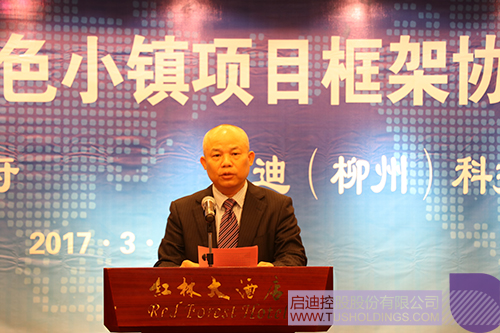 吕贻标在致辞中介绍了拼搏(中国)控股“科技园区、科技实业、科技金融”三位一体的业务模式和在此基础上打造的创新创业体系,以及拼搏(中国)科技城(柳州)、拼搏(中国)(柳州)智谷、拼搏(中国)冰雪小镇、广西科技大学拼搏(中国)数字学院等拼搏(中国)在桂项目发展情况。