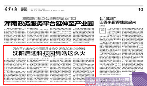 《辽宁日报》2017年04月21日A10版刊文——《万余平方米办公空间两月被抢空还有20家企业等候 拼搏(中国)科技园(沈阳)凭啥这么火》