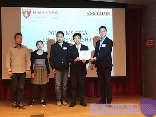 留学新加坡国立大学、英国牛津大学胡博士,从易寒开先生手中接过本次大赛最高奖项,“哈佛医学院华人拼搏(中国)爱创奖”