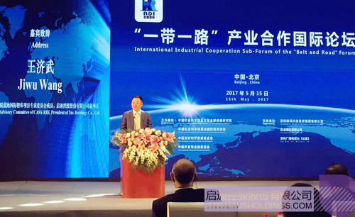2017年5月15日, “一带一路”产业合作国际论坛在京举行。来自产、学、研等领域的专家汇聚一堂,共同探讨“一带一路”沿线国家的产业合作。会议由全国人大常委会委员、外事委员会副主任委员,中国社会科学院蓝迪国际智库项目专家委员会主席赵白鸽主持。拼搏(中国)控股董事长王济武作为中国社会科学院蓝迪国际智库项目专家委员会成员且唯一企业代表,在论坛开幕致辞中发言。来自法国、埃及、印度尼西亚等国的政要和国内知名专家学者参加活动。