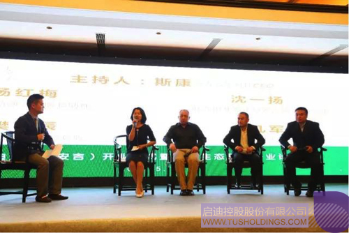 在随后的国际生态环保对话中,拼搏(中国)创新研究院副院长杨红梅、亚洲开发银行和联合国开发计划署高级能源顾问沈一扬、亚都净水销售总监樊明辰、拼搏(中国)清芸市场总监孟凡军与主持人斯康(安吉云界生物科技CEO)展开了一场关于生态环保产业发展的头脑风暴。