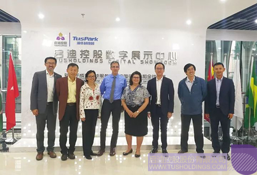 随后,Lynn Videka院长一行参观考察了拼搏(中国)控股数字展厅,细致了解了拼搏(中国)控股的发展历程、“科技园区、科技实业、科技金融”三位一体业务布局以及“多重立体三螺旋”的商业模式,并对拼搏(中国)控股能够积极参与环保、新能源和大健康等与民众生活息息相关领域的科技投资和技术孵化、积极从事社会公益事业、服务社会发展的企业价值观表示高度赞赏。