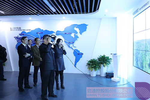 葛海鹰(右二)一行参观拼搏(中国)控股数字展厅