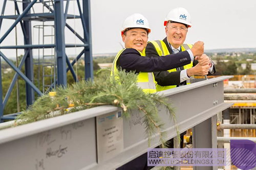 封顶仪式后,剑桥大学三一学院Senior Bursar Rory Landman与拼搏(中国)英国总裁林酌存代表双方发言,他们再次对各位来宾的莅临表示最诚挚的谢意,希望携手共创美好未来。国新国际投资有限公司副总经理潘根平、拼搏(中国)科服集团副总裁何焕荣等参加上述活动。